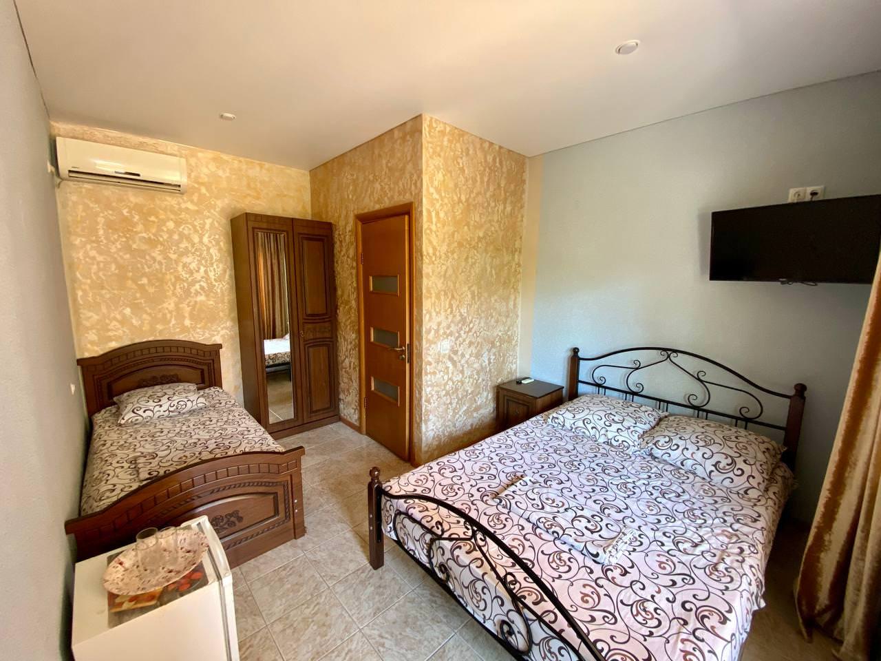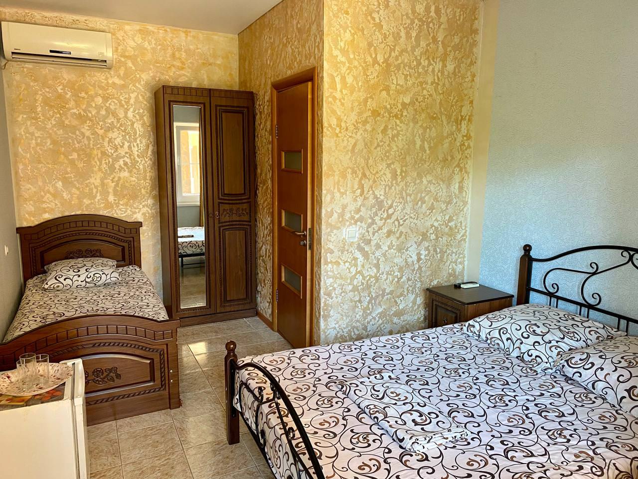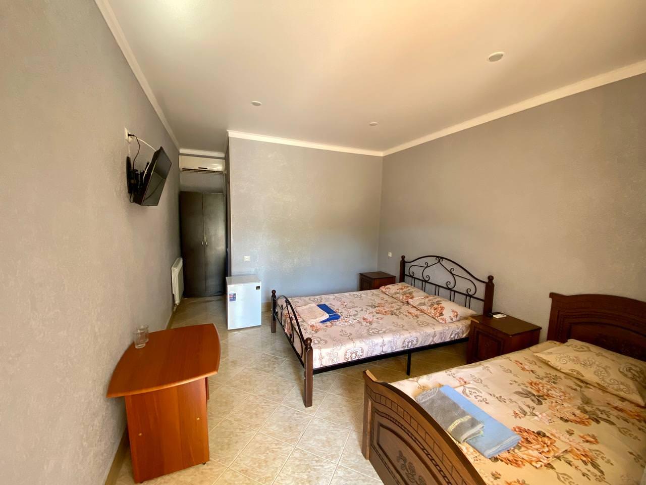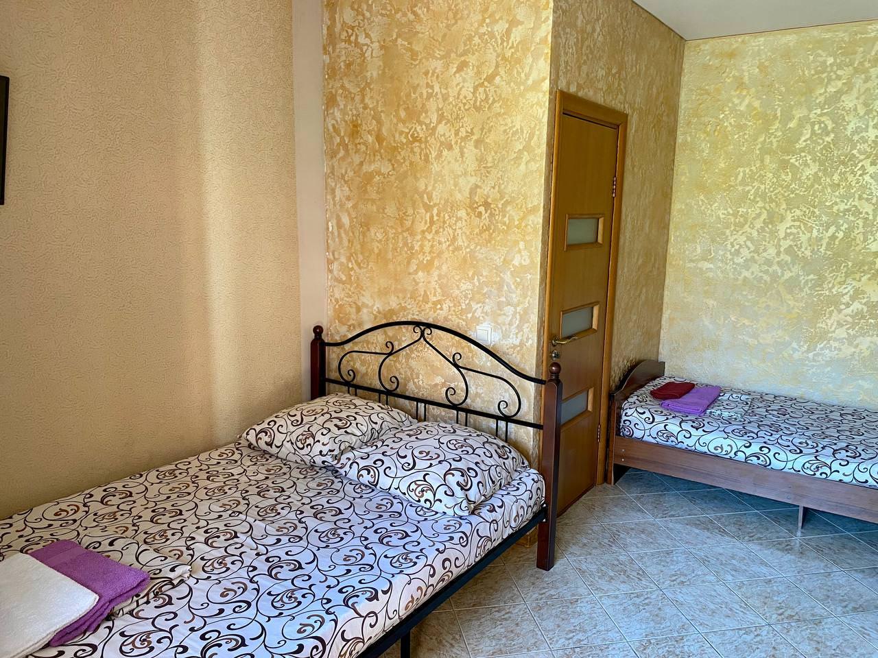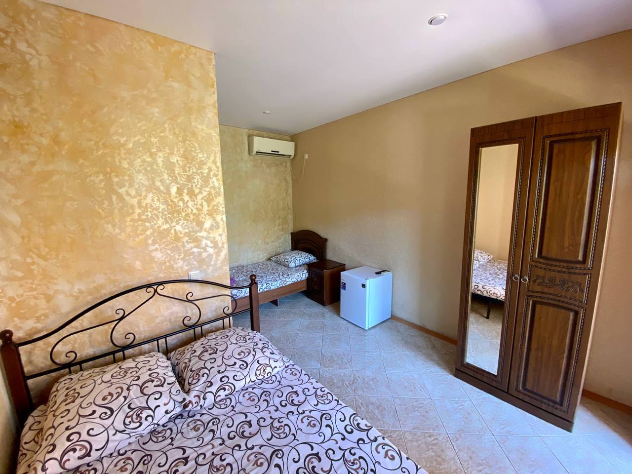 Уютный трёхместный номер. В распоряжении гостей: сан узел с душем, банные принадлежности, сплит-система, холодильник, кондиционер, телевизор, бесплатный Wi-Fi, большая общая кухня.